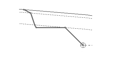 Este componente crea una pendiente fija dentro de la servidumbre (ROW). Si el punto inicial (catch) cae fuera de la ROW, la pendiente estará ligada a la ROW.